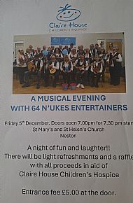 Doors open 7pm for 7.30 start. Entrance fee £5 on the door A night of fun and laughter There will be light refreshments and a raffle with all proceeds in aid of Claire House Children's Hospice. |